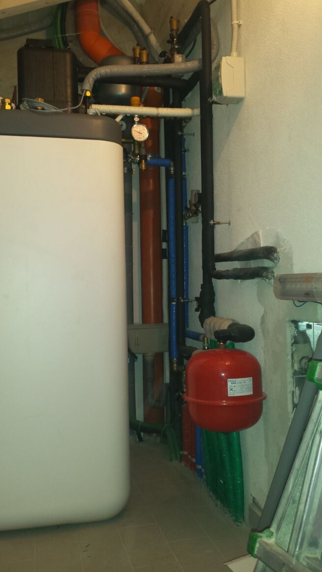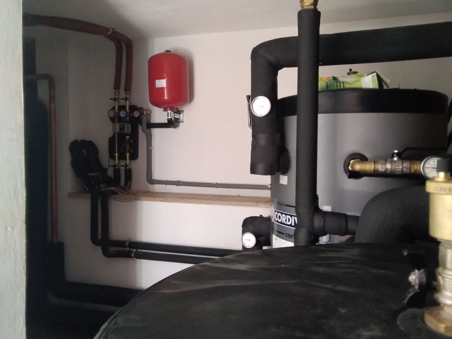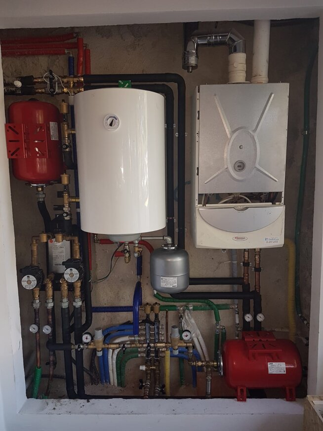 foto 15: locale tecnico con impianto termico misto termocamino e caldaia a gas